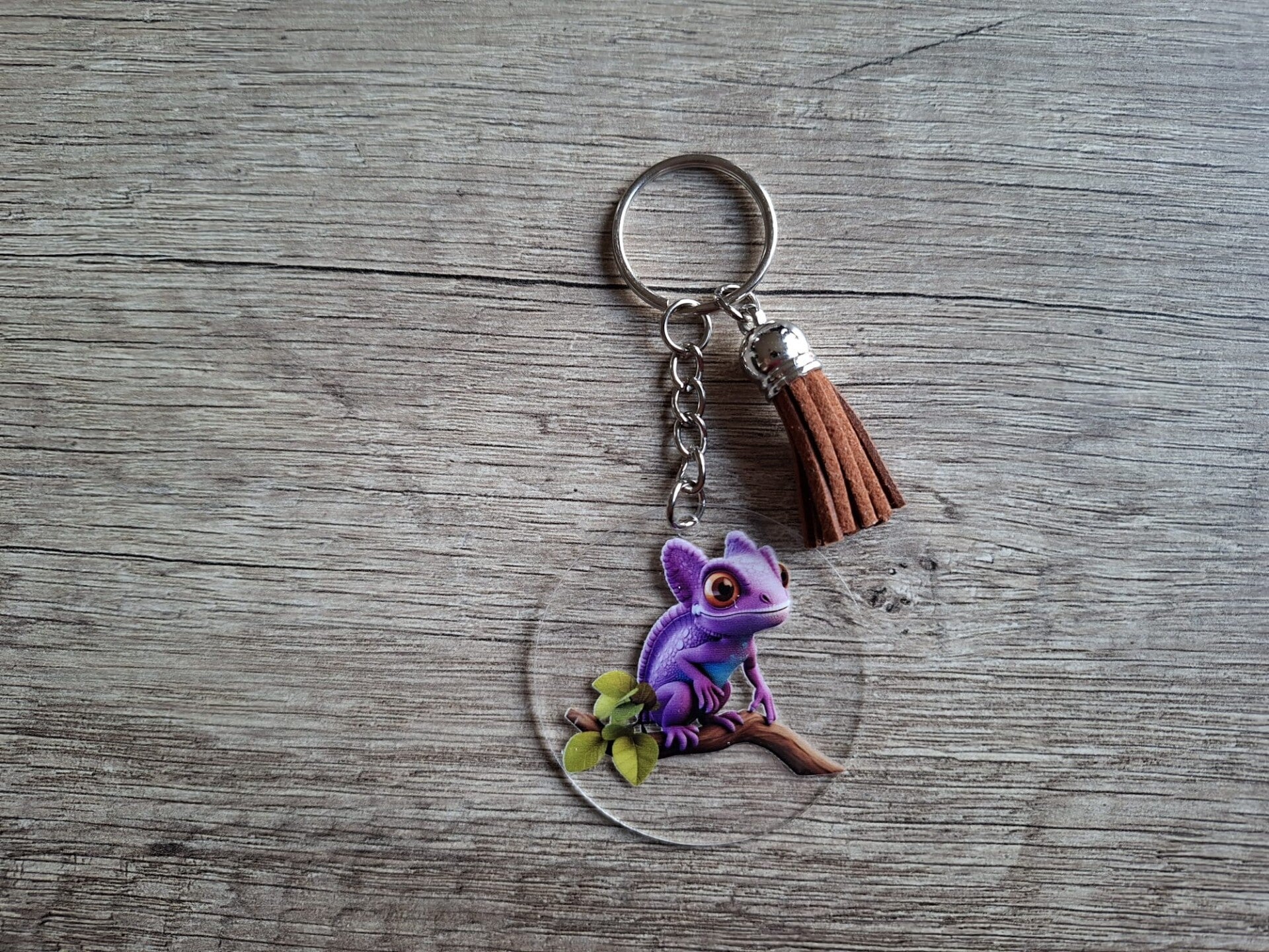 De sleutelhanger is handgemaakt met een 2D ronde hanger met een plaatje van een hagedis aan 1 zijde !!