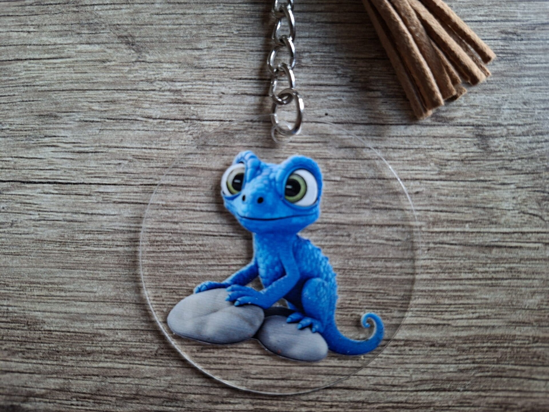 De sleutelhanger is handgemaakt met een 2D ronde hanger met een plaatje van een hagedis aan 1 zijde !!