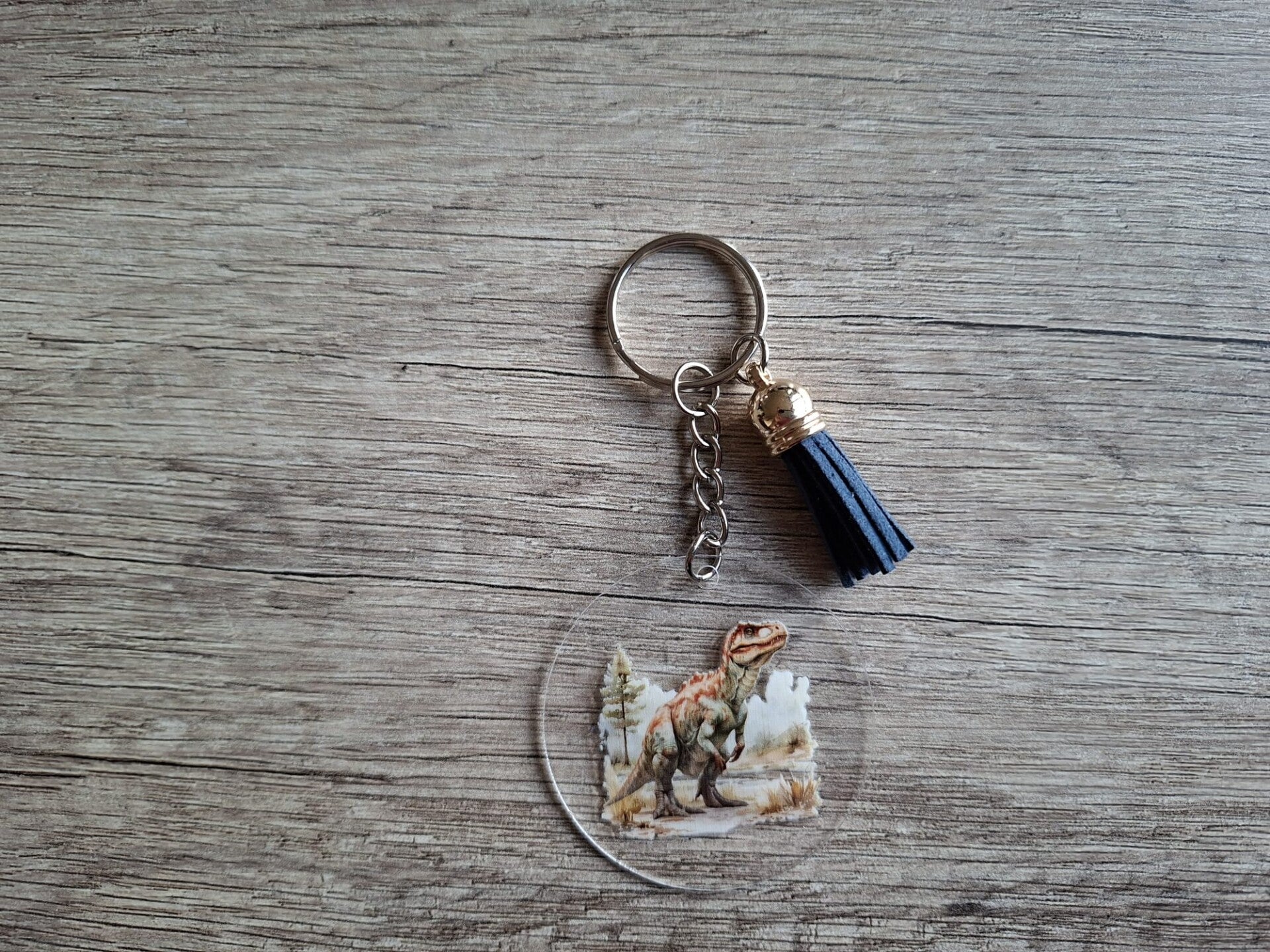 De sleutelhanger is handgemaakt met een 2D ronde hanger met Carnosaurus plaatje aan 1 zijde !!
