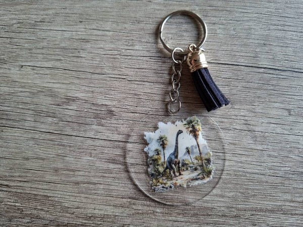 De sleutelhanger is handgemaakt met een 2D ronde hanger met Brachiosaurus plaatje aan 1 zijde !!