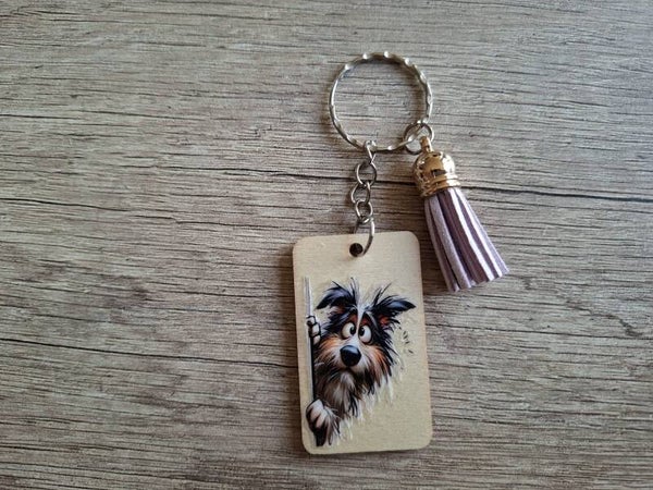 De sleutelhanger is handgemaakt met een houten hanger met een plaatje van een Hondje aan 1 zijde !!