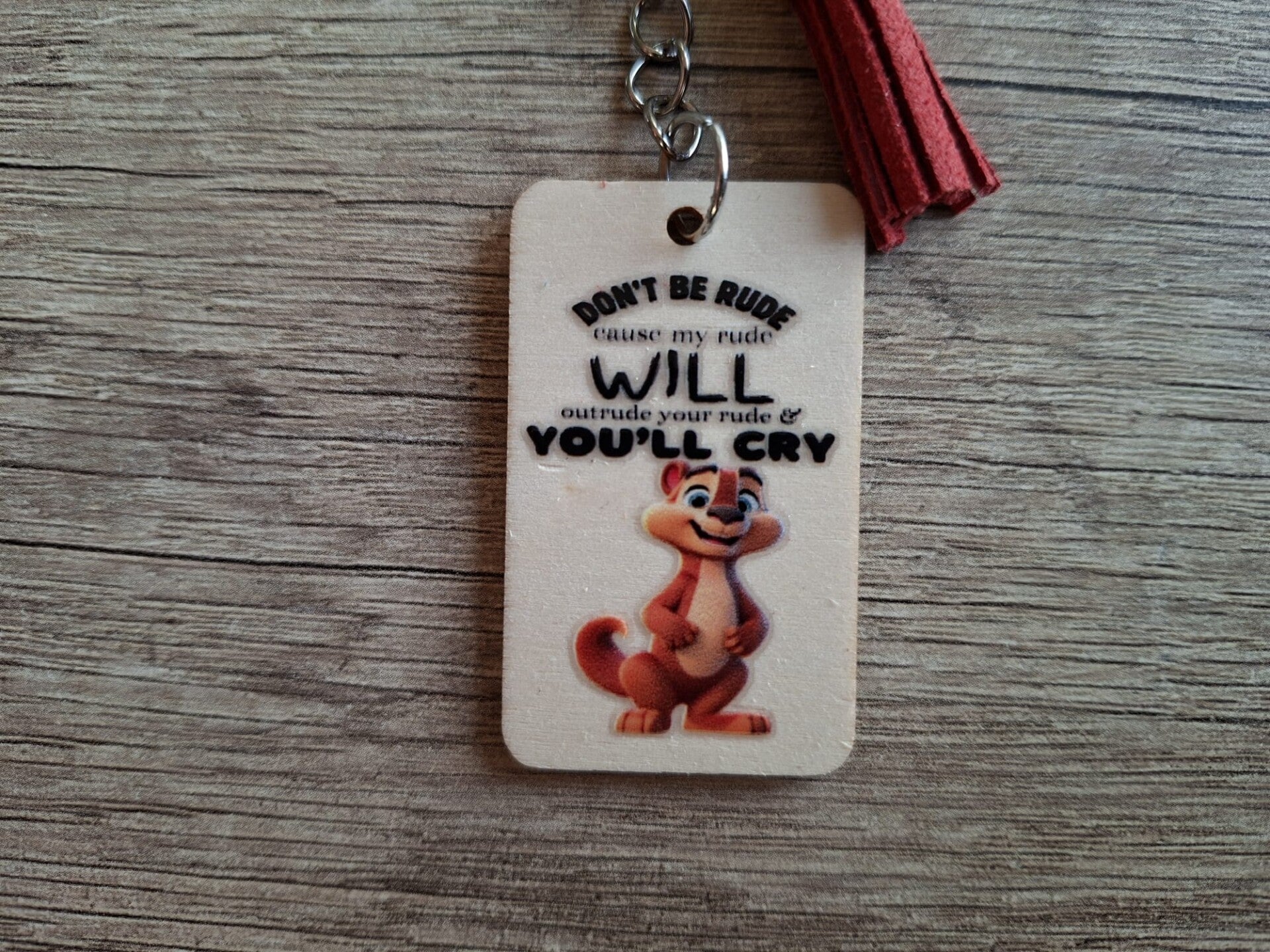 Op het plaatje staat de tekst : Don't Be Rude Cause My Rude Will Outrude Your Rude & You'LL Cry.