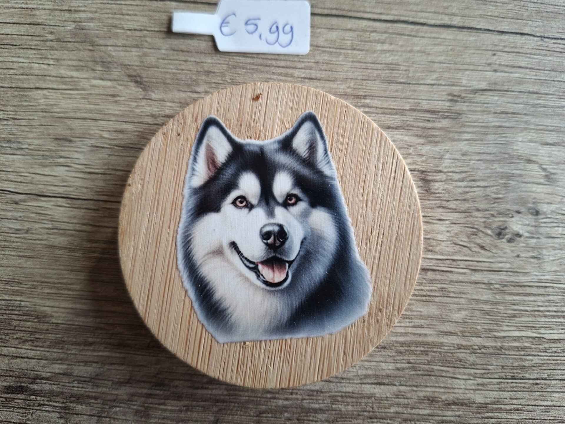 De Flessen-Opener is handgemaakt met een leuk dier plaatje : Alaskan Malamute !!