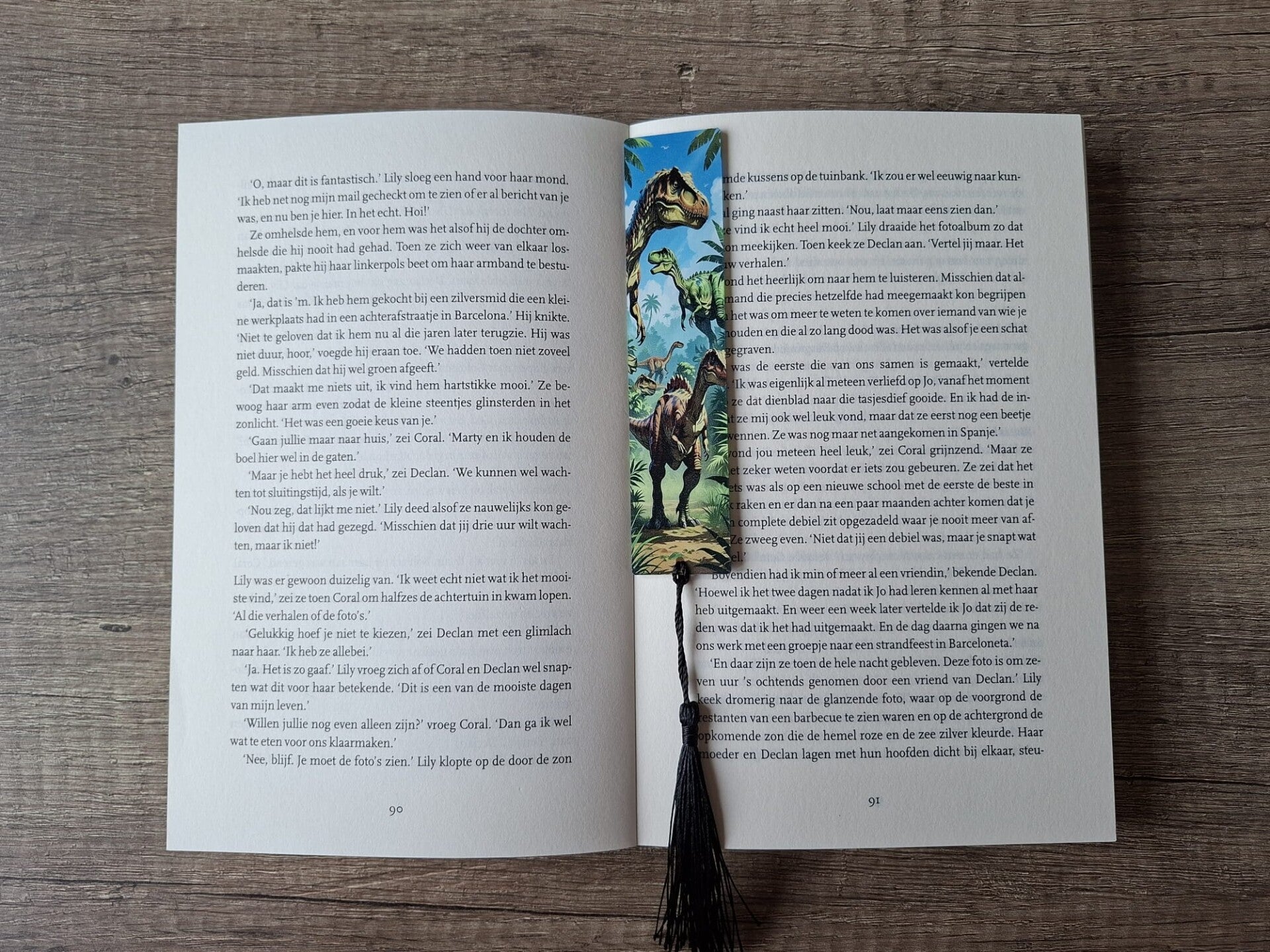 De Boekenlegger is handgemaakt met een leuk dino ontwerp aan 1 zijde !!