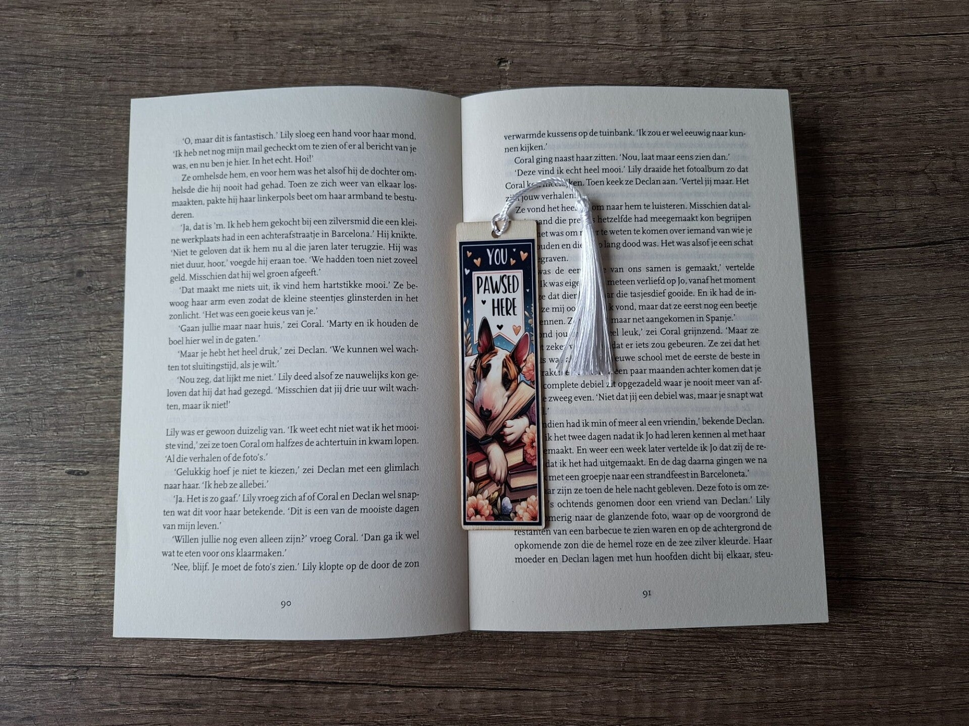 De Boekenlegger is handgemaakt met een leuk ontwerp aan 1 zijde met de tekst : You Pawsed Here !!