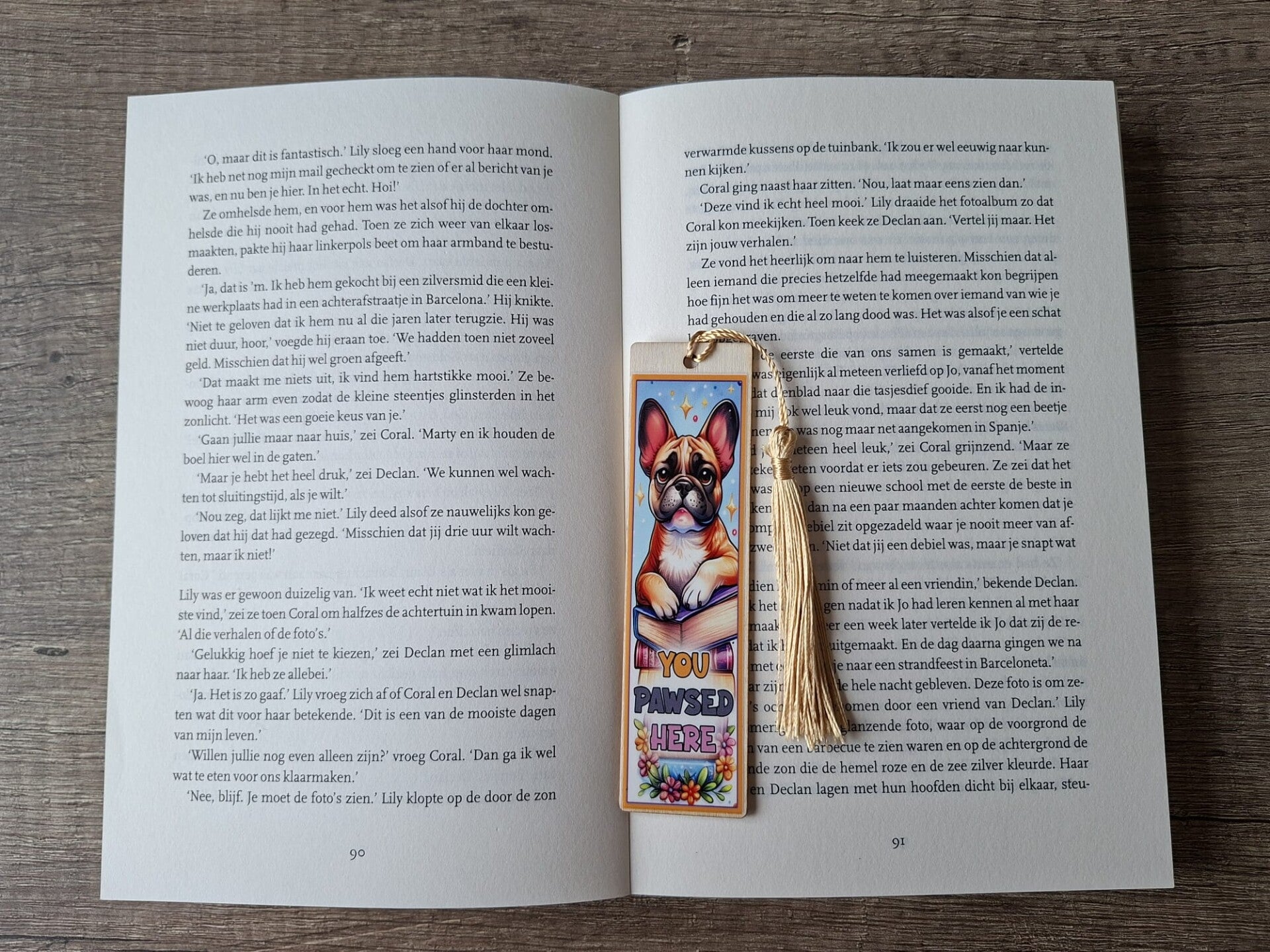 De Boekenlegger is handgemaakt met een leuk ontwerp aan 1 zijde met de tekst : You Pawsed here !!
