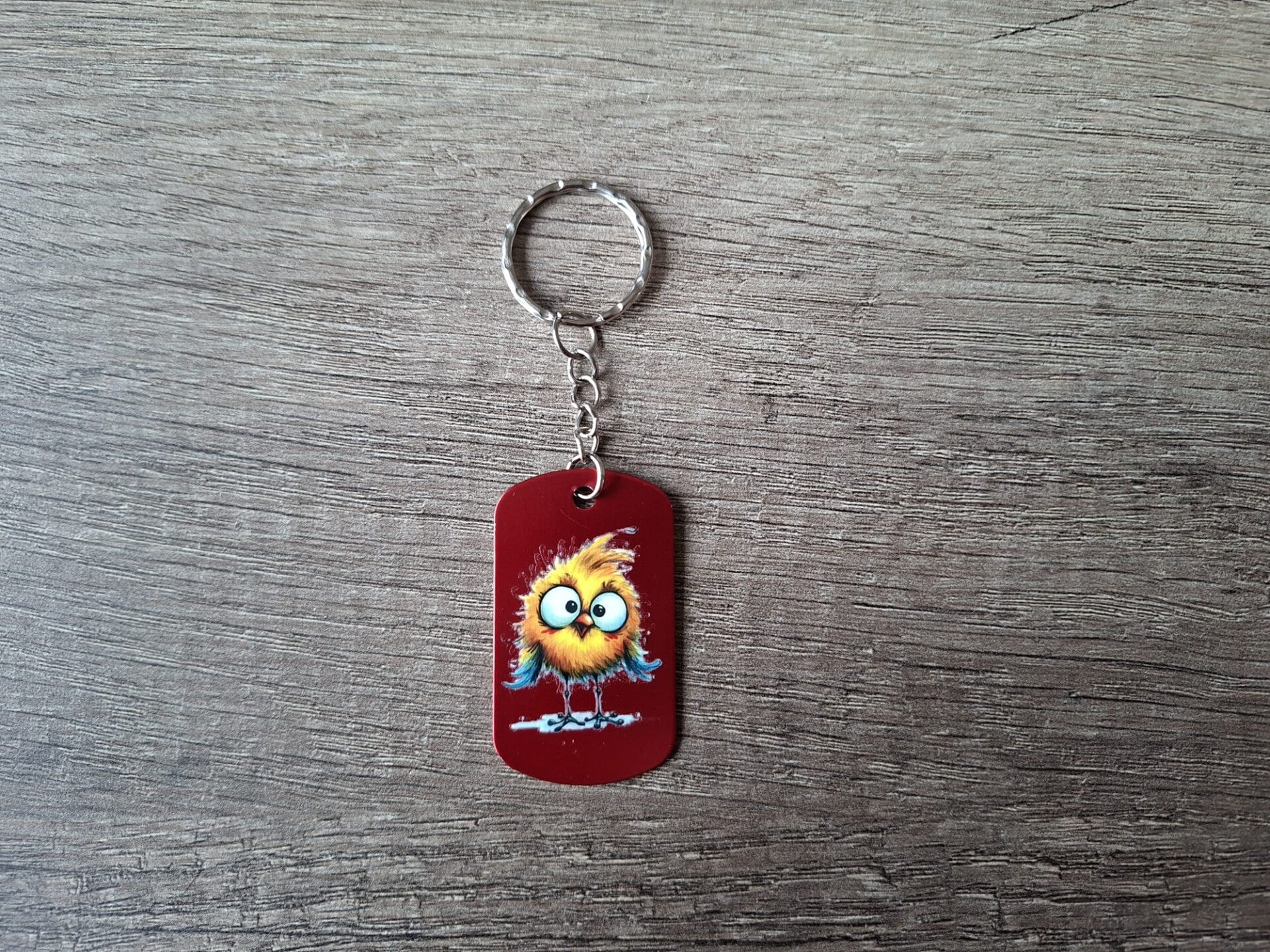 De sleutelhanger is handgemaakt van een Rode Tag met een plaatje van een Grappige Vogel aan 1 zijde !!