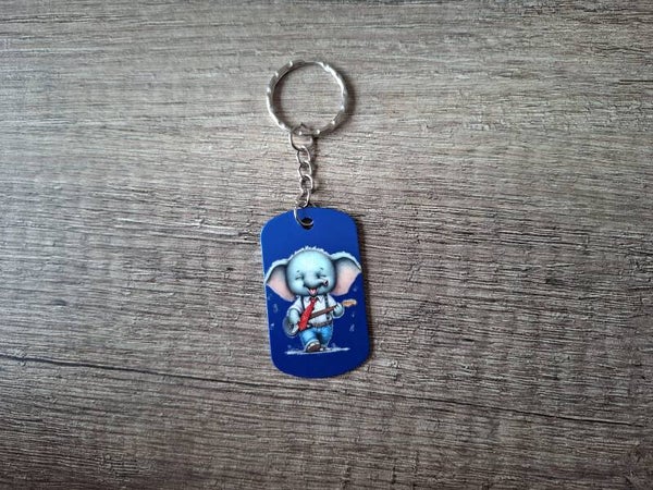 De sleutelhanger is handgemaakt van een Blauwe Tag met een plaatje van een Olifantje aan 1 zijde !!