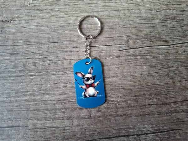 Sleutelhanger : Blauwe Metalen Tag : Coole Konijn !! 1