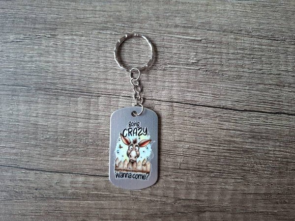 De sleutelhanger is handgemaakt van een Zilverkleurige Tag met een leuk plaatje met Tekst aan 1 zijde !!