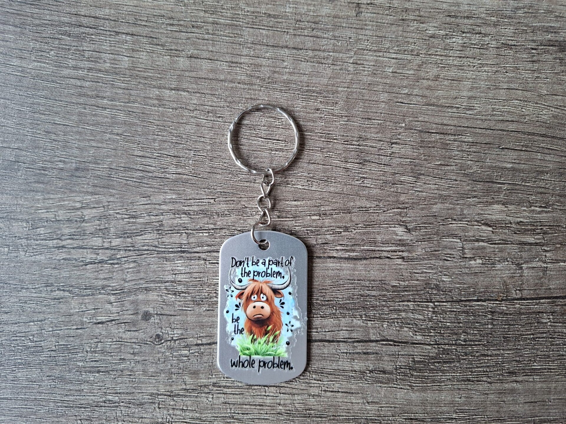 De sleutelhanger is handgemaakt van een Zilverkleurige Tag met een leuk plaatje met Tekst aan 1 zijde !!