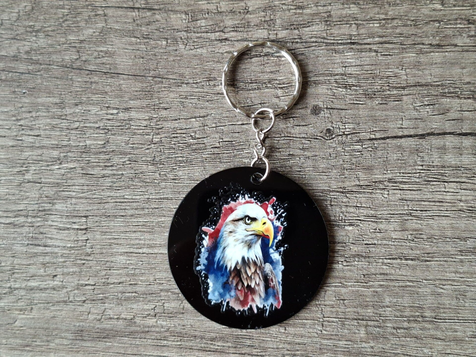De sleutelhanger is handgemaakt met een 2D ronde hanger met een plaatje van een dier aan 1 zijde Adelaar !!
