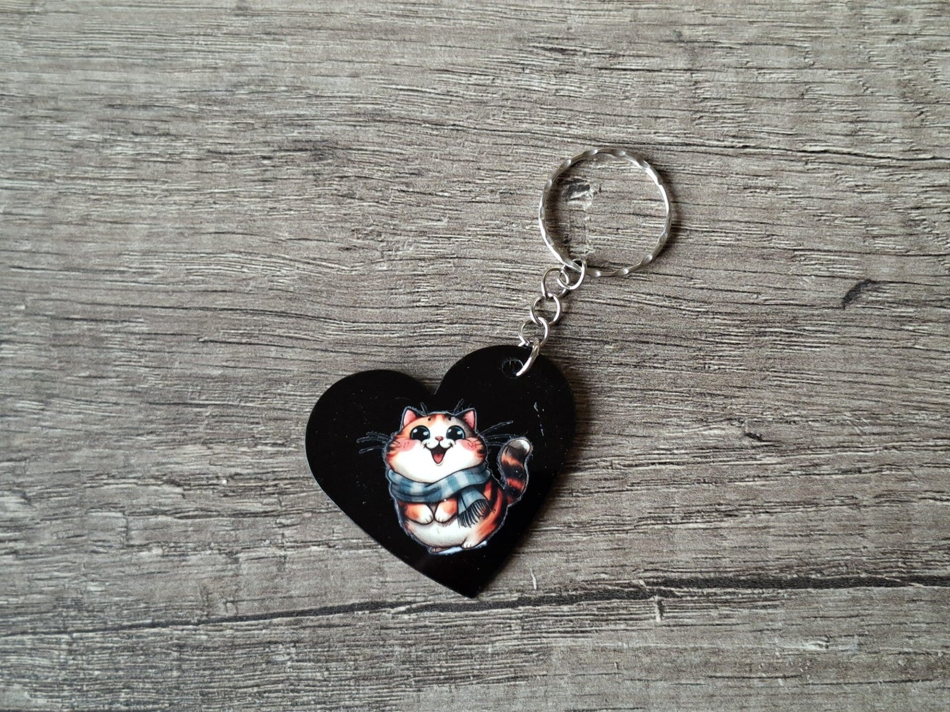 De sleutelhanger is handgemaakt met een 2D Hart hanger en een plaatje van een dier aan 1 zijde : Katje !!